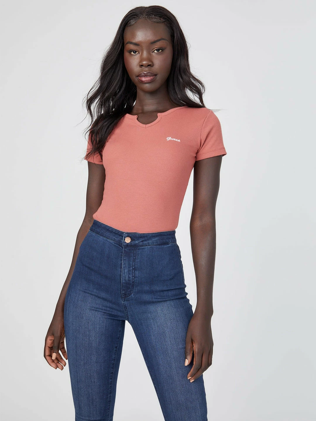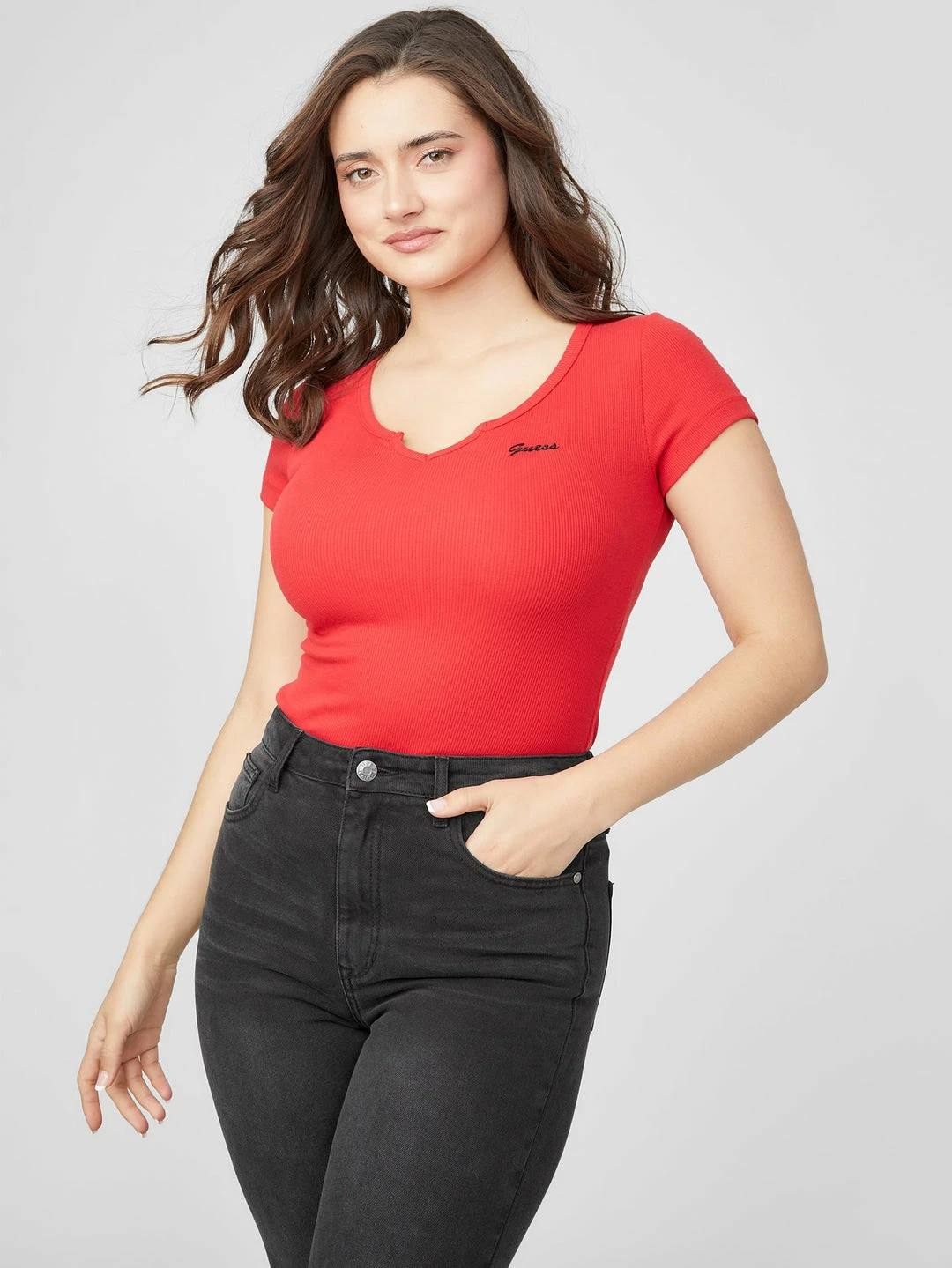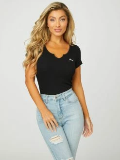 Deals ๐ Guess Factory Yara Logo Notched V-Neck Tee for ๐ฉ women ๐