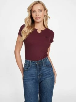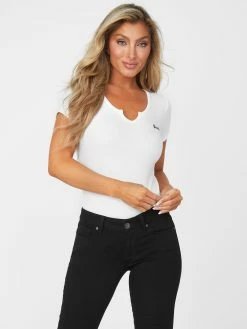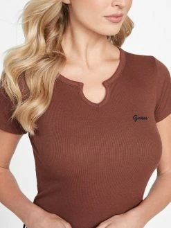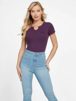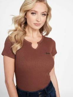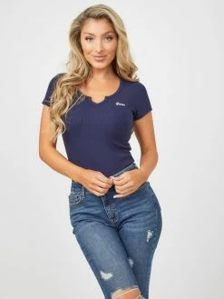 Top 10 ๐ Guess Factory Yara Logo Notched V-Neck Tee for ๐ฉ women ๐
