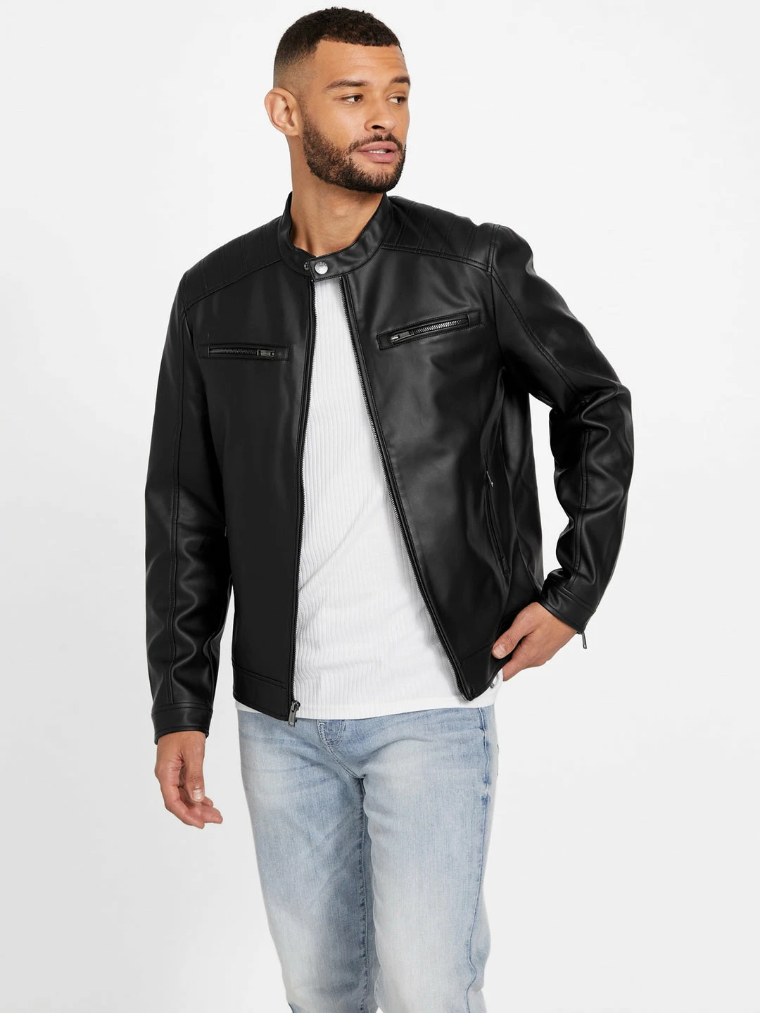 New 🎉 Guess Factory Zacky Moto Faux-Leather Jacket for men 👍