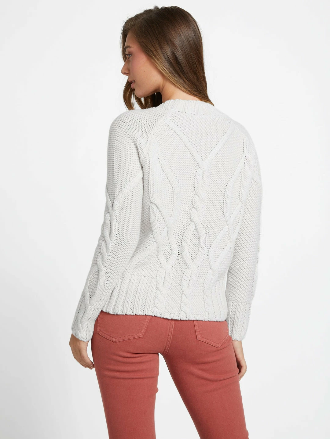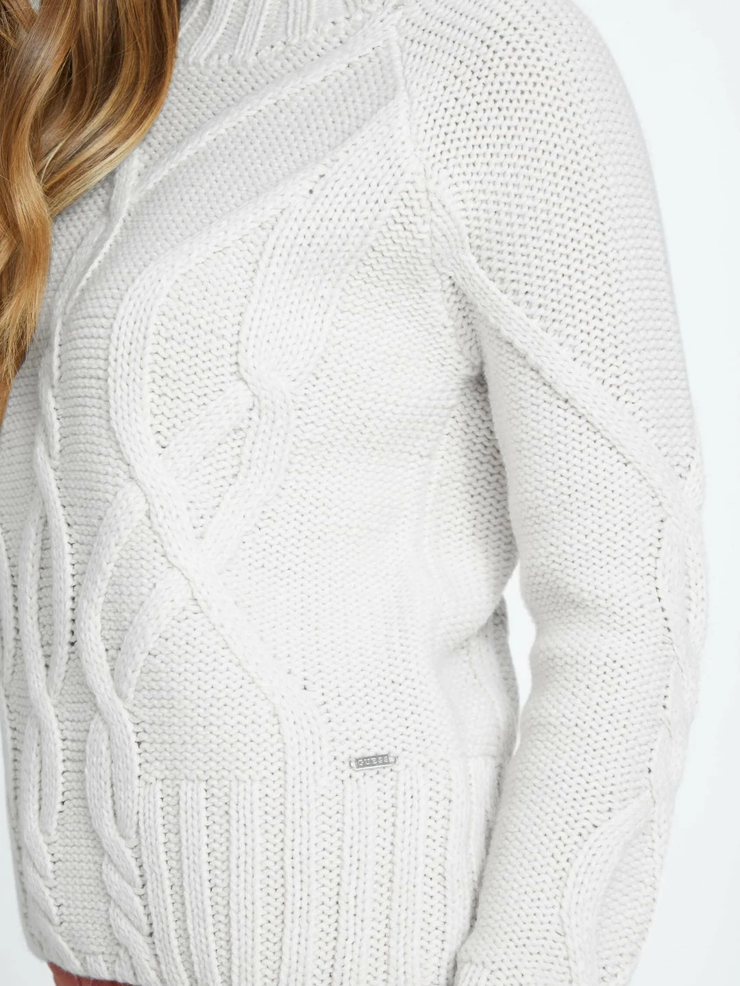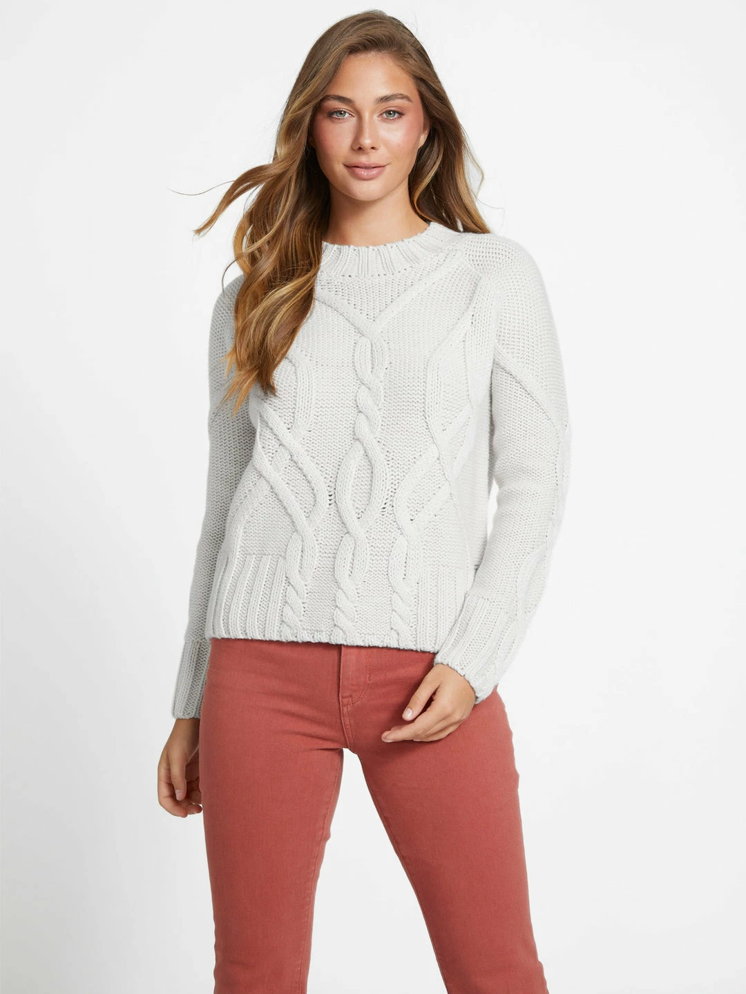 Take on the colder temps with this wool-blend sweater featuring a large cable design, crew neckline and long sleeves.
